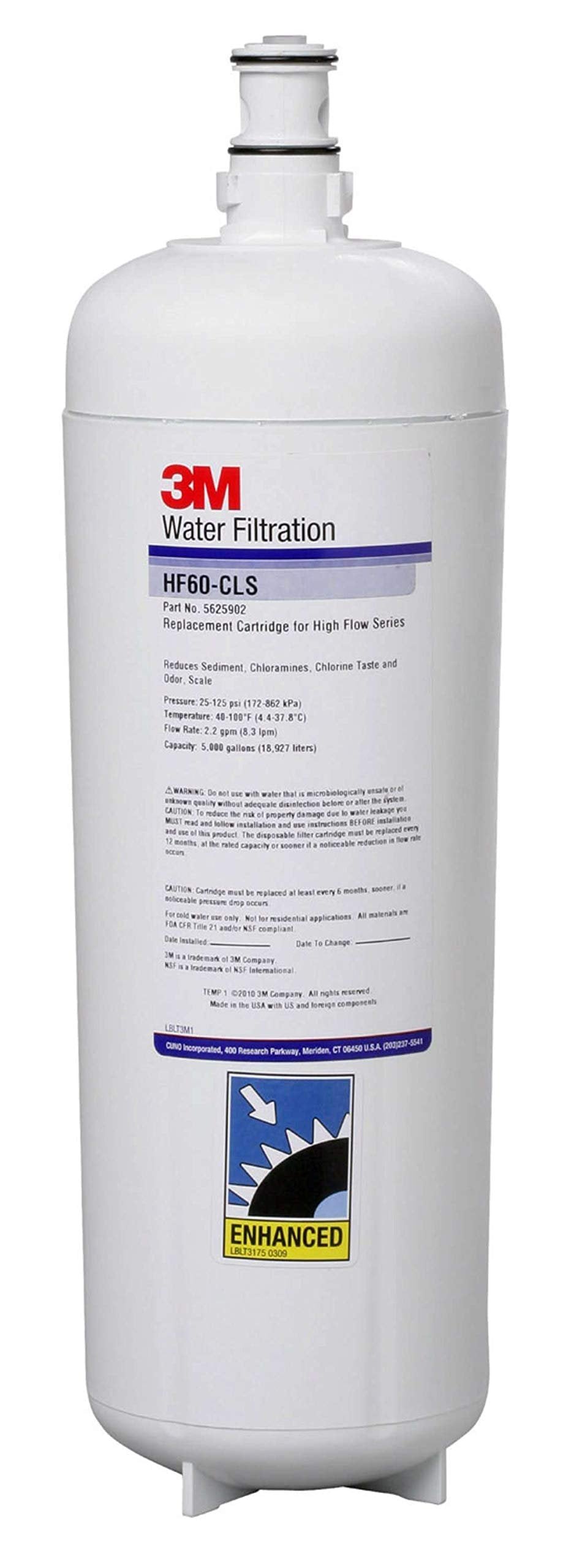 The 3M™ HF60-CLS High Flow Series Replacement Cartridge is a high-performance commercial water filter designed to reduce bacteria, cysts, chlorine taste and odor, chloramine, sediment, and scale. It uses non-woven filter technology with a 0.2-micron rating and supports a flow rate of 2.2 GPM (8.3 L/min), making it ideal for high-demand applications.