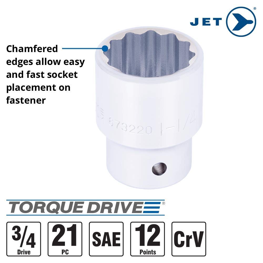 JET 21-Piece 3/4-inch Drive SAE, 12 Point, Ratchet Wrench Chrome Socket Set, 600402